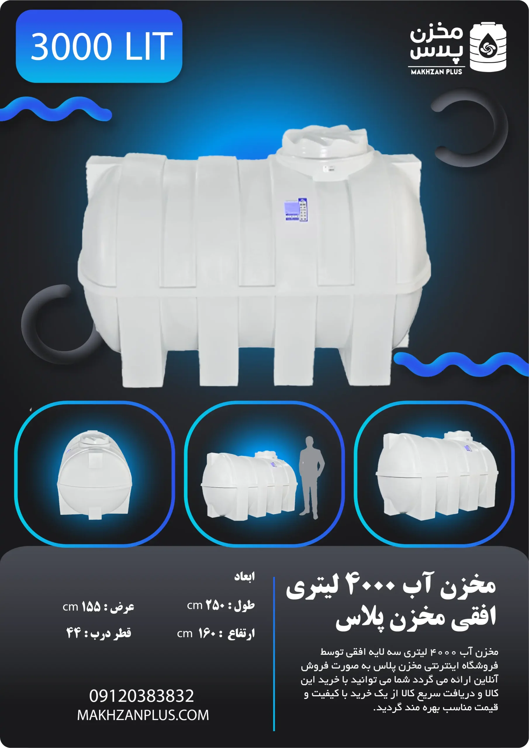 | ظرفیت | ۳۰۰۰ لیتر | ۴۰۰۰ لیتر | ۵۰۰0 لیتر |