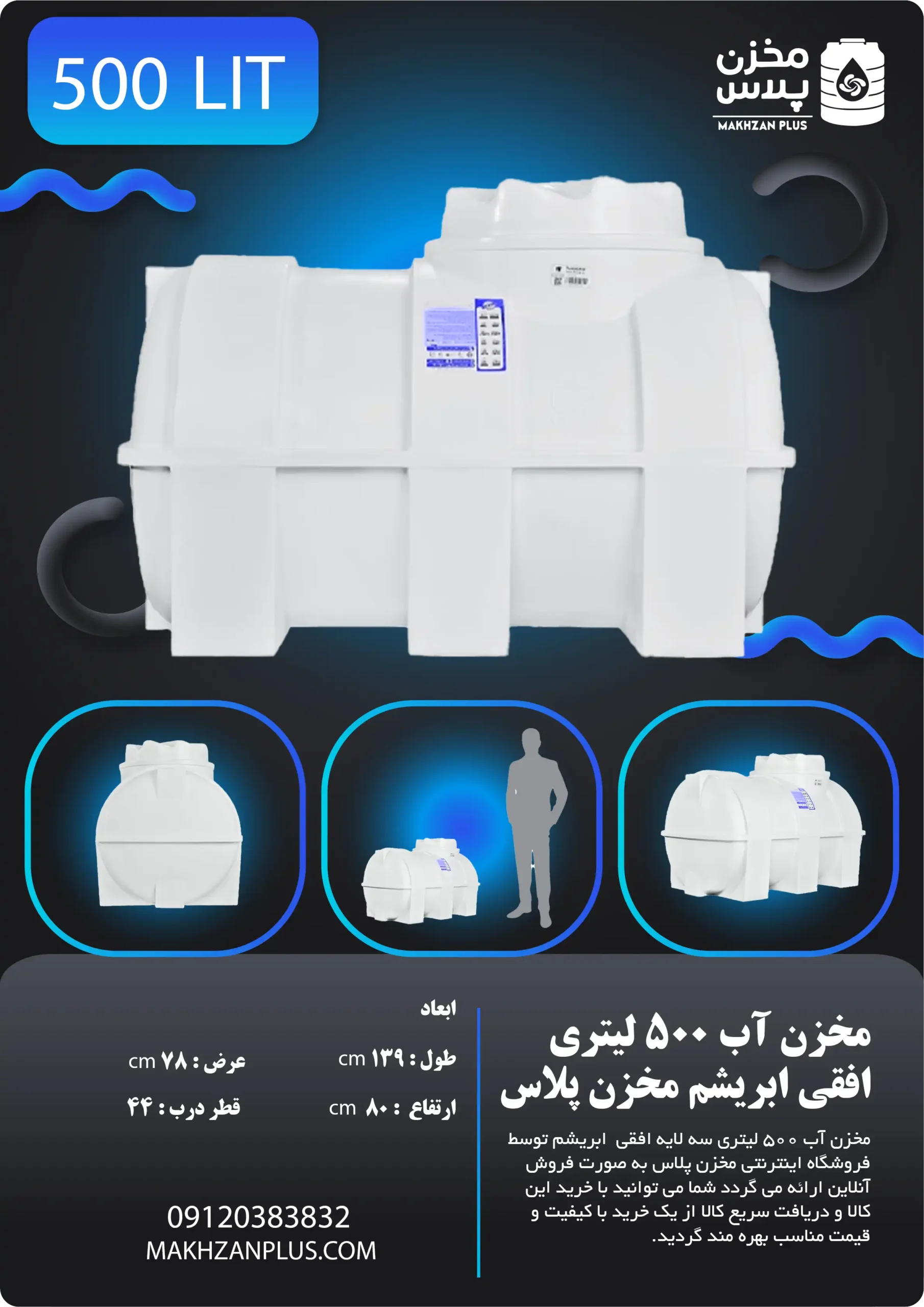 مزایا و مخزن ۵۰۰ لیتری سه لایه افقی