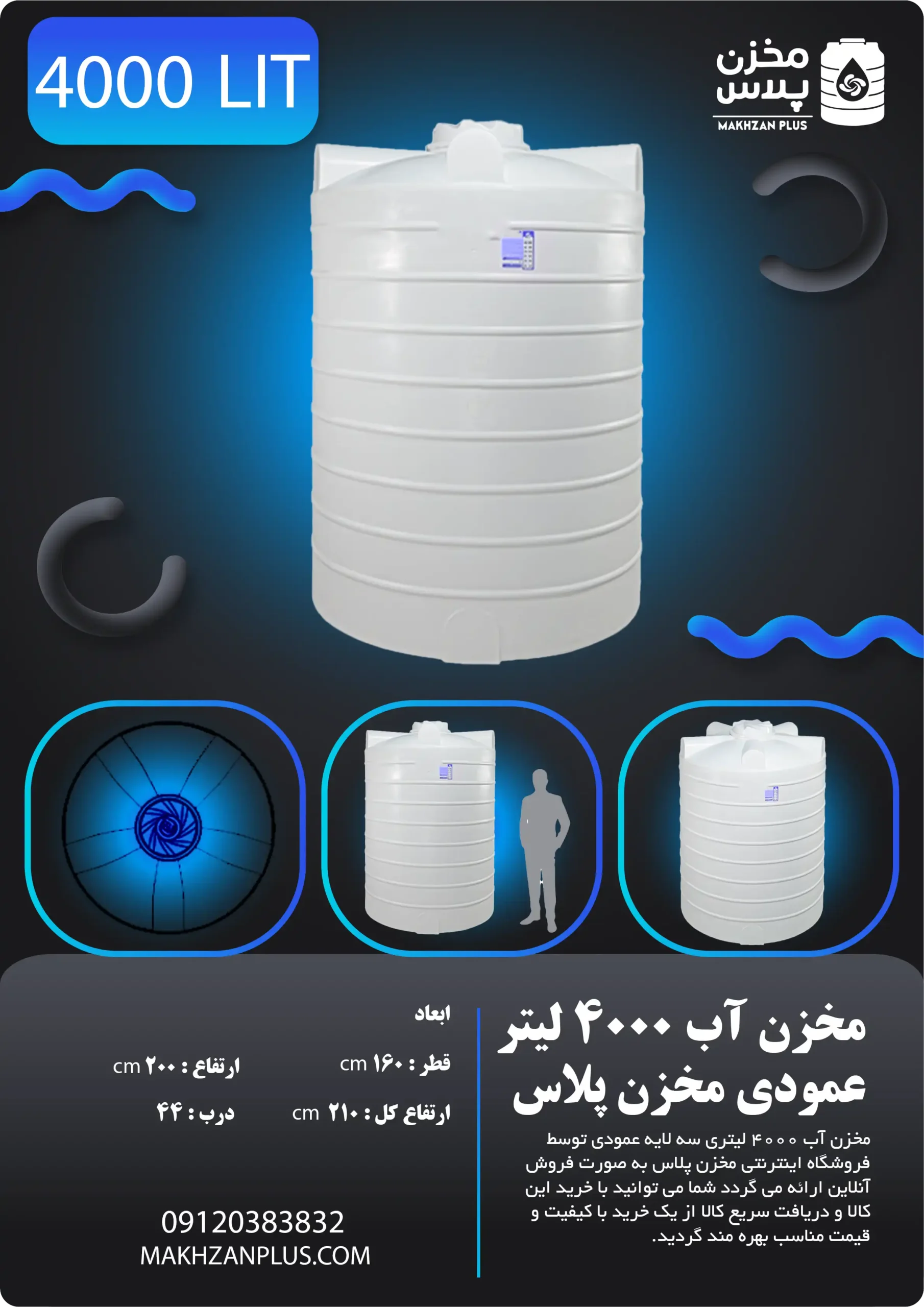 جدول مقایسه مخزن ۴۰۰۰ لیتری عمودی با ۳۰۰۰ و ۵۰۰۰ لیتری