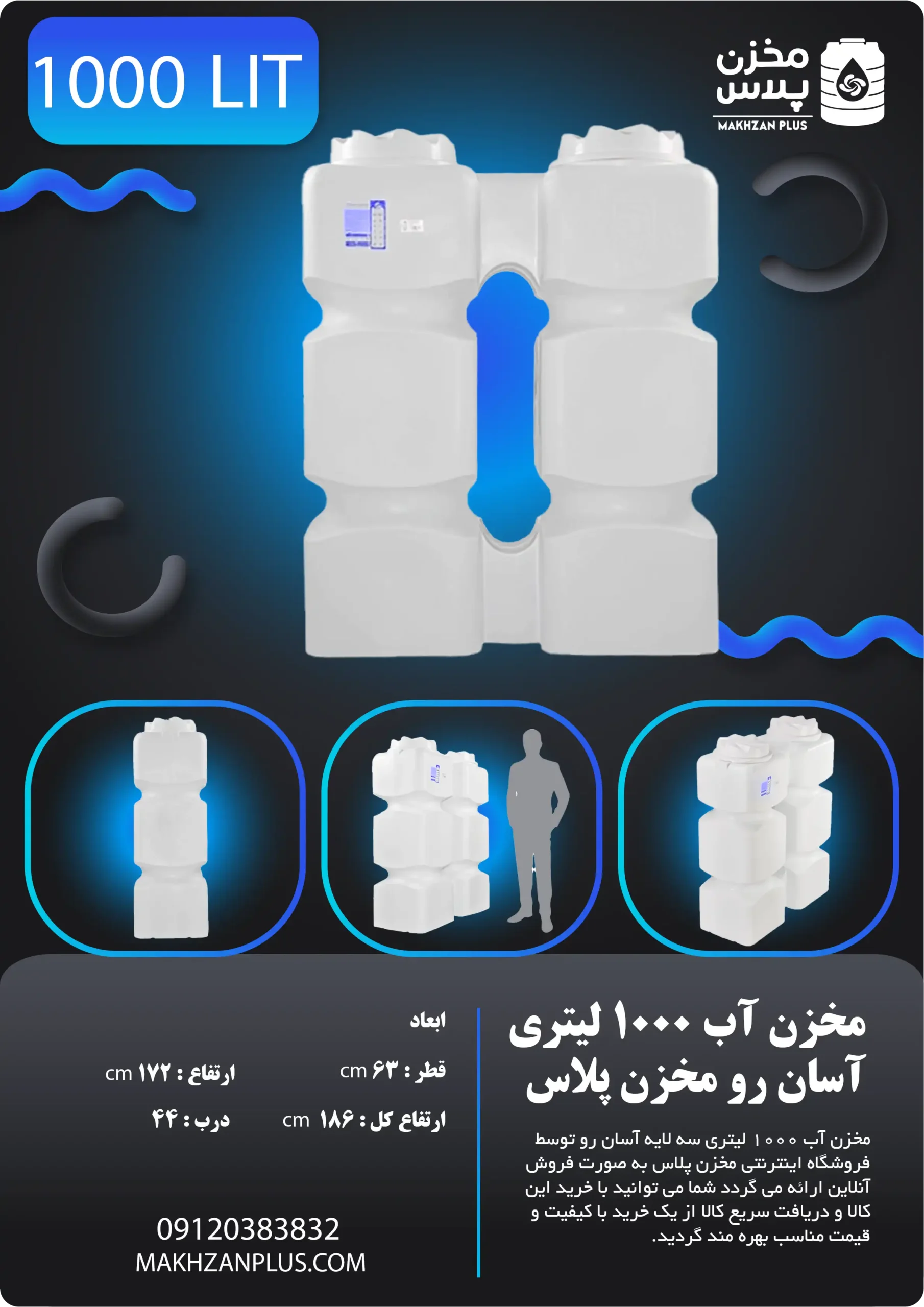 در حالیکه بسیاری از مخازن برای دستیابی به ظرفیت بالا به فضای زیادی نیاز دارند، این مخزن با استفاده بهینه از طول و ارتفاع، حداقل فضای عرضی را اشغال کرده و ظرفیت ۱۰۰۰ لیتری مناسبی ارائه میدهد.
